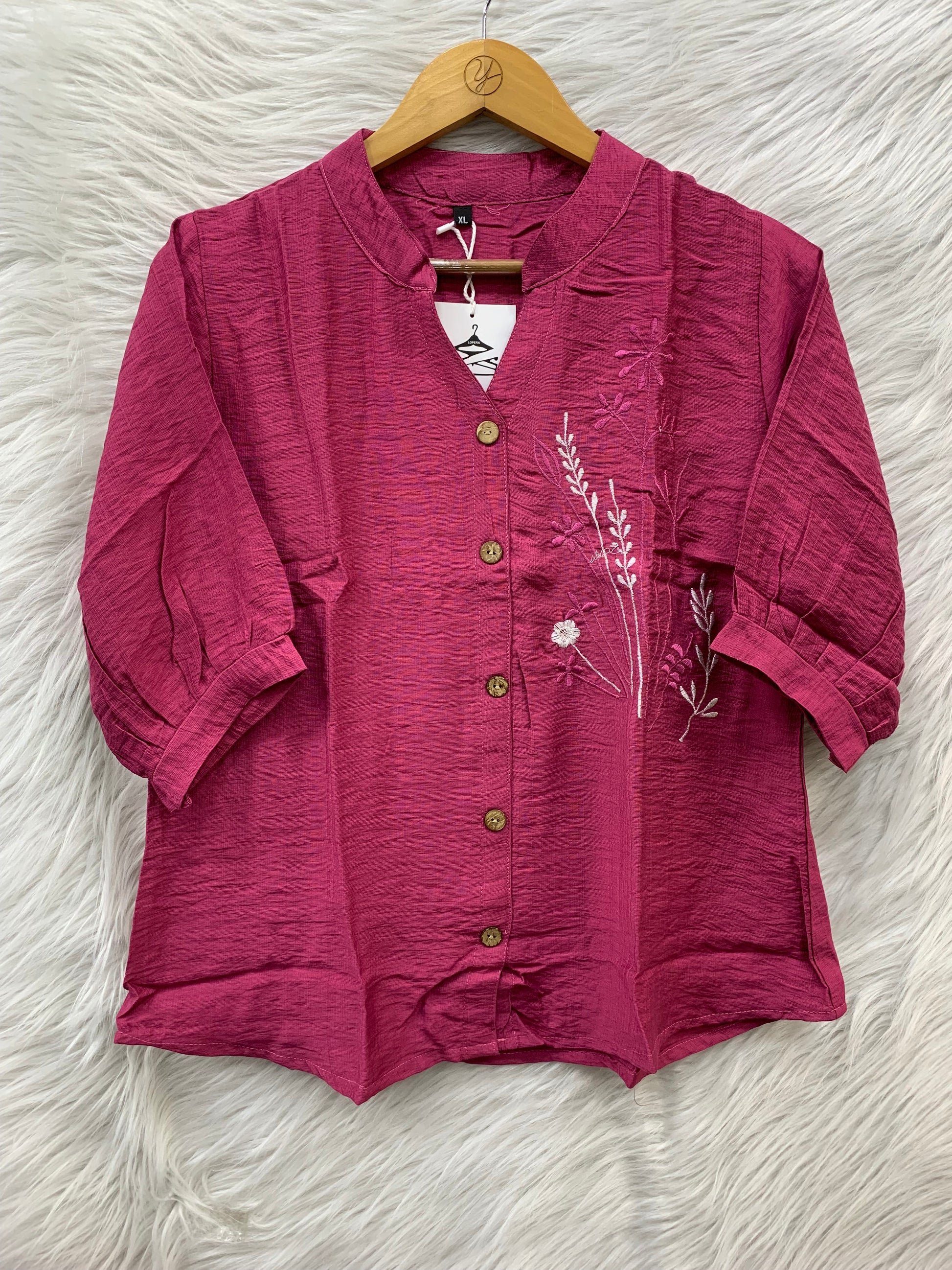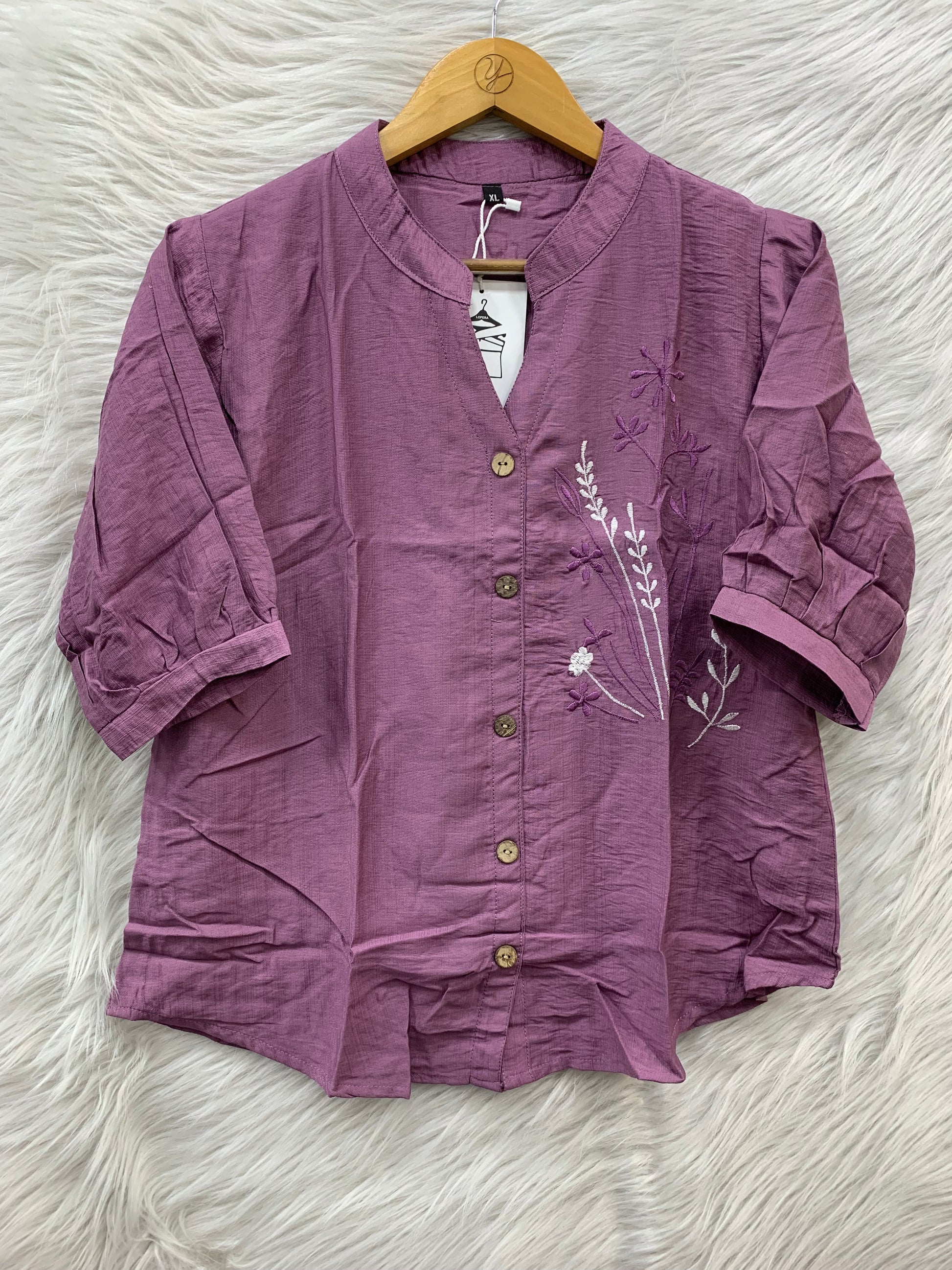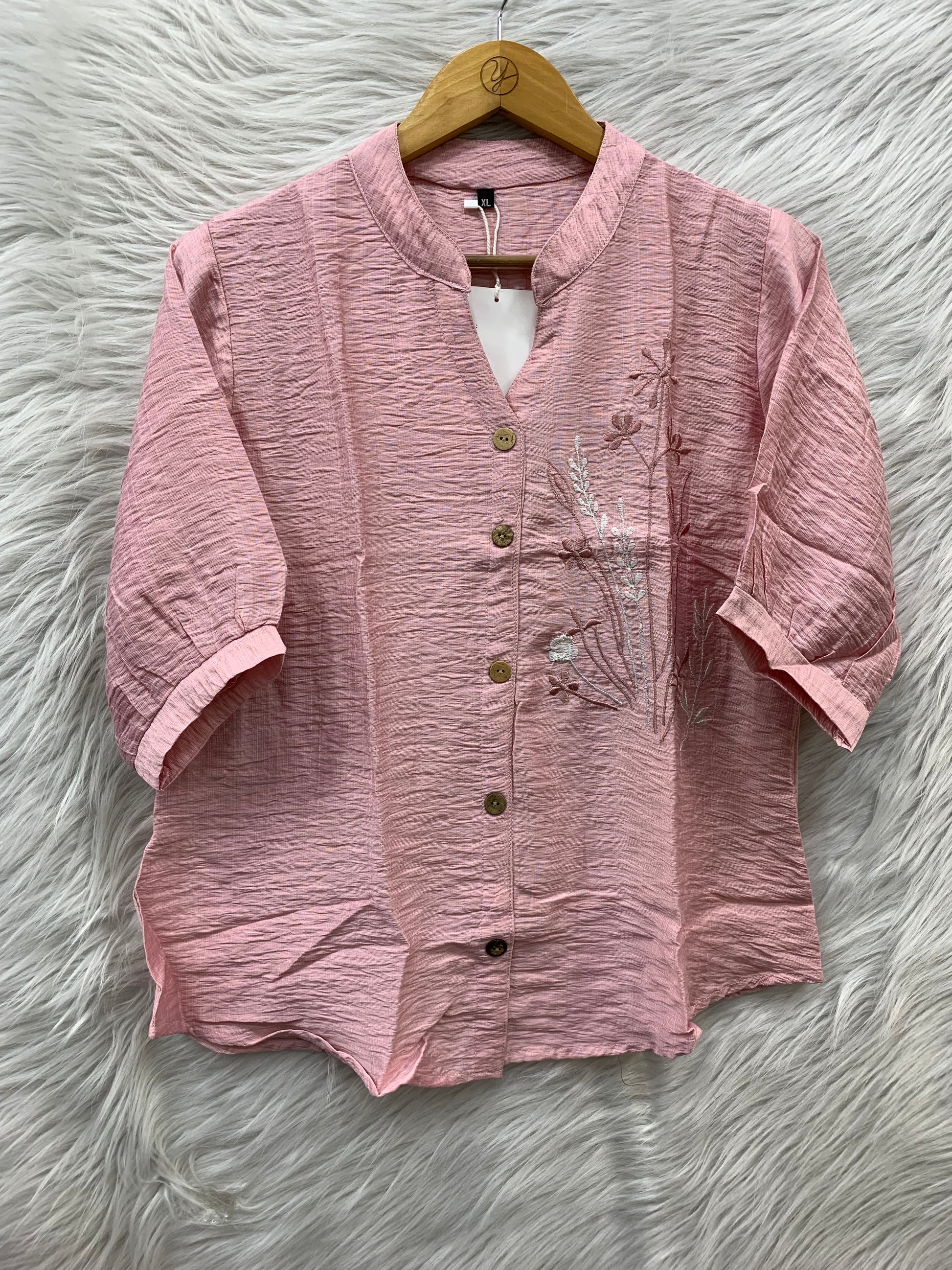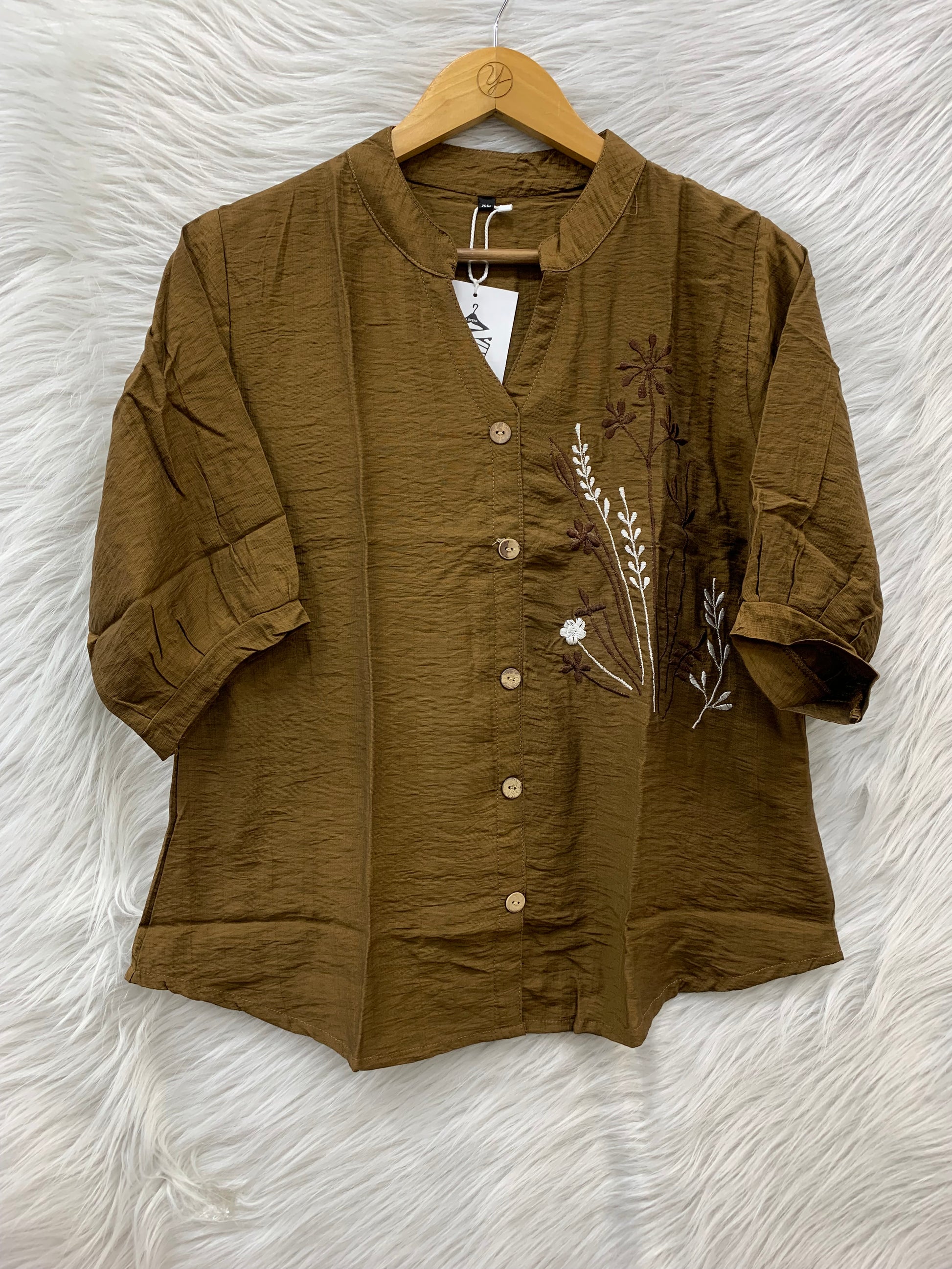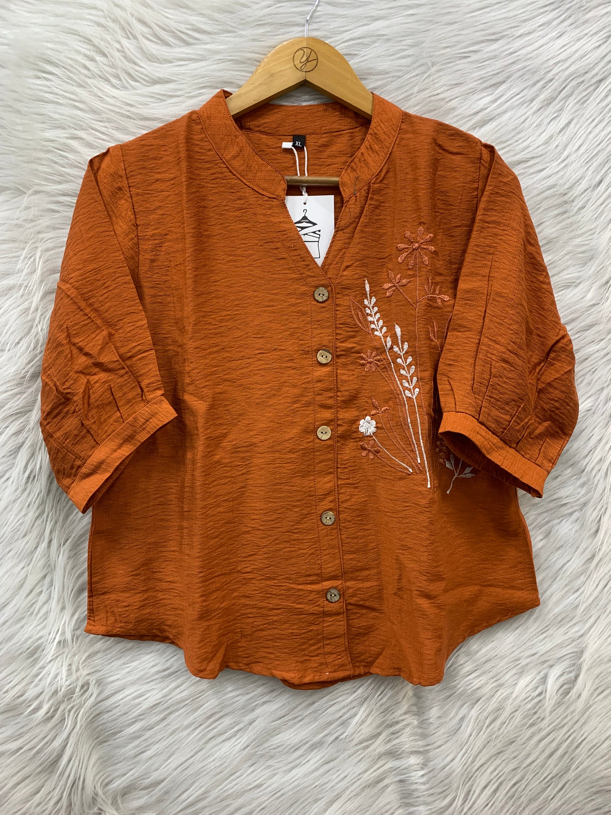 Stylish embroidered button-down top with a relaxed fit and elegant floral detailing for a trendy everyday look.